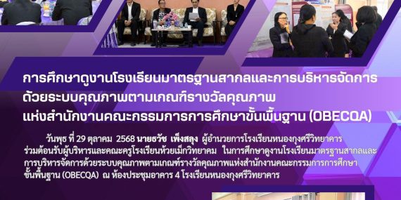 วันพุธ ที่ 29 ตุลาคม 2568 นายธวัช เพ็งสลุง ผู้อำนวยการโรงเรียนหนองกุงศรีวิทยาคาร
